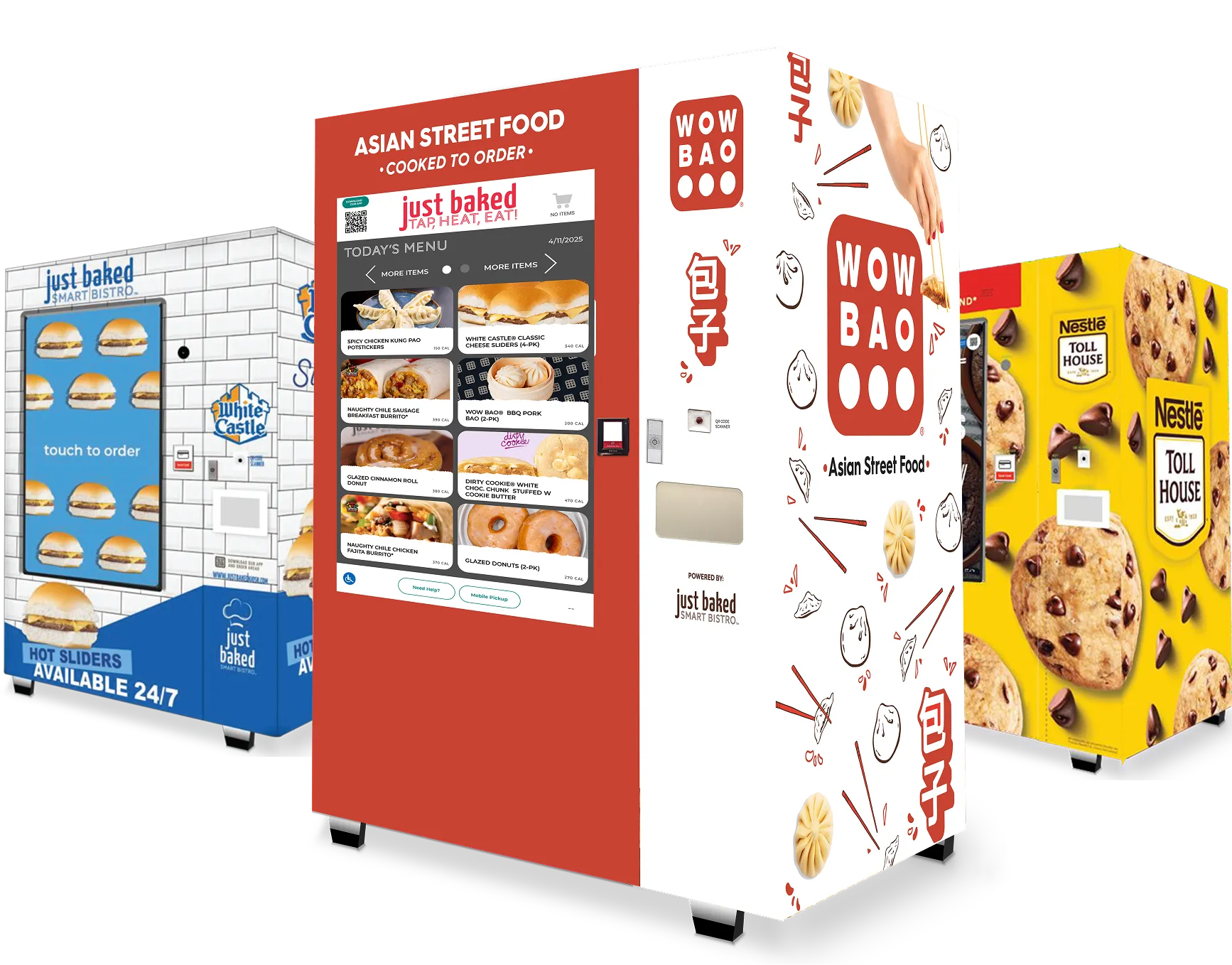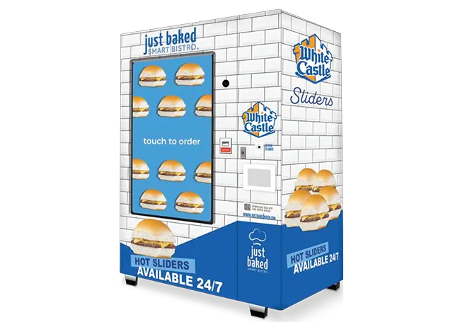 Our fully automated, robotic Just Baked™ kiosk offers a rotating menu of hot, on-demand meals in under 2 minutes. From White Castle sliders to fresh-baked Nestlé cookies, customers can order, pay for, and instantly enjoy the foods they know and love practically anywhere. And brands can offer their customers’ favorites 24/7 without having to worry about staffing, kitchens, or overhead.